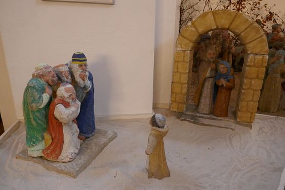 On to the small church St. Matern, where they host an exhbiition of nativity scenes each year. Some are historically themed, like this medieval visit by the three wise men: